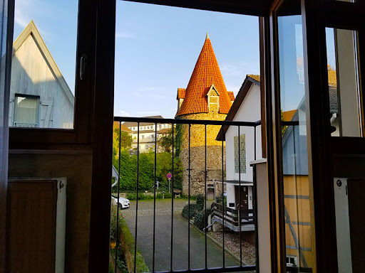 Der Katzenturm, am höchsten Punkt der Stadtbefestigung gelegen, war ein wichtiger Teil des mittelalterlichen Frühwarnsystems der Stadt. Vom Turm aus gab es auch eine direkte Sichtverbindung zum vor der Stadt gelegenen sogenannten Stumpfen Turm. Mit Hilfe von Licht- und Rauchsignalen konnte von hier aus die Stadt frühzeitig vor herannahenden Feinden...