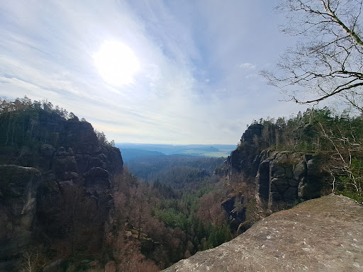 Read moreWir haben den Aufstieg durch die Wilde Hölle genommen und den würde ich auf jeden Fall empfehlen, da man dort ein wenig klettern kann und es echt Spaß macht. Von der Wilden Hölle geht es dann noch ca. zehn Minuten weiter bergauf, bis man zum Carolafelsen kommt und es ist jeden Meter wert. Der Ausblick von dort ist fantastisch. Man hat einen richtig guten Weitblick und mit der Festung Königstein, Lilienstein und der ganzen Umgebung rundherum. Der Platz lädt dazu ein, Picknick zu machen, sich zu sonnen oder moderat zu klettern (also mehr von einem großen Stein zum nächsten zu springen). Eigentlich wollten wir nur die Wilde Hölle machen, aber ein paar Leute meinten, man sollte doch weiter gehen, um den Ausblick nicht zu verpassen. Also macht das!!! Von dem, was wir insgesamt im Elbsandsteingebirge gesehen haben, fand ich den Rundumblick...