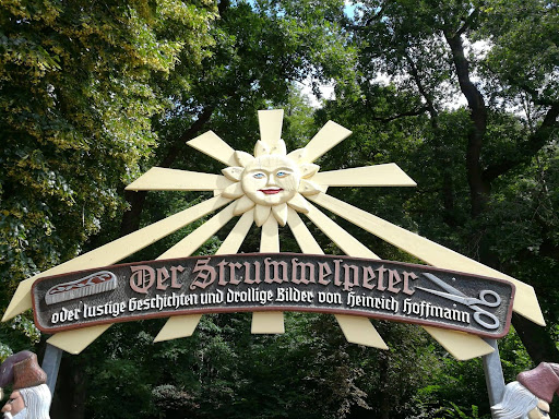 Eine kleine bunte Freiluftausstellung mit den Bildern und Motiven der sehr alten Bilderbuchgeschichte "Der Struwwelpeter" von Heinrich Hoffmann, die wohl als Geschenk für den eigenen Sohn zu Weihnachten 1844 verfasst hatte. In seinen Lebenserinnerungen schrieb Hoffmann: „Ja, ich kann mit Befriedigung sagen, der Schlingel hat sich die Welt erobert, ganz friedlich, ohne Blutvergießen, und die bösen Buben sind weiter auf der Erde herumgekommen als ich; ich habe gehört, dass man ihnen in Nord- und Südamerika, ja am Kap der guten Hoffnung, in Indien und Australien...
