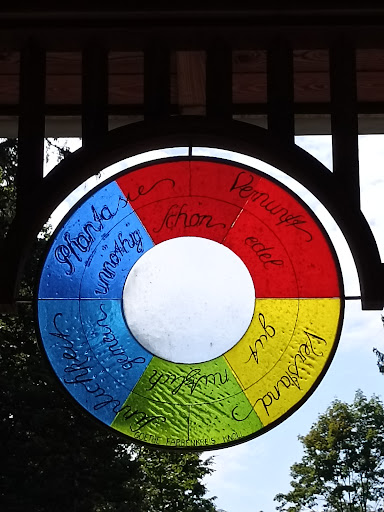 Verblüffend, wie man schon nach ein paar Minuten besser zu atmen meint, bei längerer Anwendung ist das sicher noch viel wirksamer. Auch Goethes Farbkreis kann einen zum Nachdenken anregen, eine gelungene Kombination!