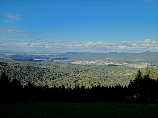 Read moreThe two trains run continuously, one going up while the other comes down. About 20 people can fit at a time. The ride itself takes barely 10 min and is pretty as you go steeply up through the forest. At the top is a restaurant with an outdoor terrace, a playground, a stone monument, and the viewing tower. I was confounded by how to open the door and gave up twice but figured out that you had to press the square button and open the door at the same time (there’s wild boars in the area, I guess they can get in?). In the tower are bathrooms. The spiral staircase goes up to two different viewing levels. The first is completely indoors with glass windows and a high ledge. The next viewing level up is open air, with a high ledge to protect us. Either viewing area provides lovely views of the forest, Baden-Baden, the Hohenberg castle, and farms. No additional charge to enter the tower. Many people come up on their bikes. There is a very tiny gift shop selling magnets and postcards. It is enjoyable if you have extended time in...