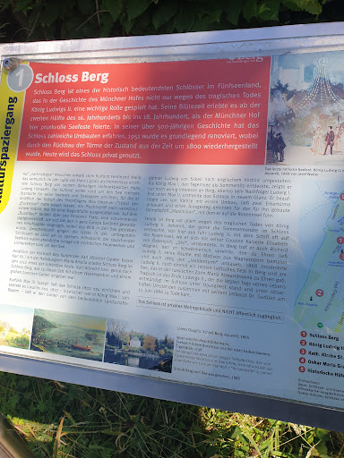 Read moreDer Ort hat eine sehr große historische Bedeutung: In Berg liegen ein Schloss der Wittelsbacher und der Park mit der Gedächtniskapelle zu Ehren von König Ludwig II. Denn er ist hier auf mysteriöse Weise im Jahr 1886 verstorben.
