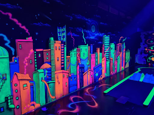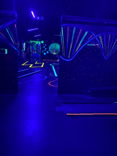 This mini golf course is a weird one. I visited in July 2019. The staff seemed friendly and helpful. The golf course itself is situated in the basement of the old Görlitzer Bahnhof, inside Görlitzer Park just off Skalitzer Straße and Görlitzer Straße. This basement is very dark, with the golf course using luminous paint; whilst this makes the experience different and interesting, it is very hard to see where the holes are - so much so that it is advisable to feel with your hands where each hole actually is before playing. Loud techno music plays throughout the course, which can be annoying over the course of a game, you have to raise your voice audibly to speak to someone next to you. Also as there is no air conditioning, it can become incredibly hot whilst playing - on the day I visited it was about 25°C outside, so it became very uncomfortable towards the end of the game. Another negative is that due to the cramped nature of the course, it can become very busy and you might have to wait up to 20 minutes to have a turn on a particular hole. Görlitzer Park and the area around the park is dodgy as **! I wouldn't personally recommend visiting this park for any tourists (unless you want to buy some weed). There are lots of drug dealers hanging around the entrance to the park and near the entrance of the mini golf course. You might want to think twice before children into this park and I would under no circumstances recommend visiting this park or mini golf course after dark.