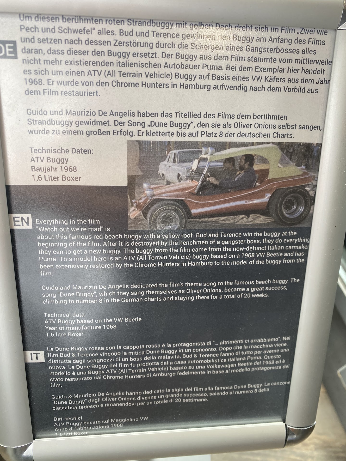 Neben der Ausstellung sind Fahrzeuge zu bestaunen und man kann sich dort in einem kleinen Kino nochmal von Bud selbst seine Geschichte erzählen lassen Also genau das richtige für jeden eingefleischten Fan.