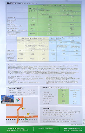 Nun zur Kritik: Als Nichtmitglied des DAV kann man zur Zeit die Halle nicht besuchen, auch wenn auf der Webseite und den Broschüren der Eintritt mit 18,50€ angegeben ist. Eine Frechheit ist auch der erhöte Preis für Mitglieder anderer Sektionen von 15,00€. Huer merkt man besonders, dass die Geschäftsführung noch in einem anderen Jahrhundert zu leben scheint. Die Halle ist recht klein, was ihr gerade zu Stoßzeiten ab etwa 18:00 / 19:00 Uhr zum Verhängnis wird. Im Sommer heizt sich die Halle gerne auf und auch die Ventilatoren bringen bestenfalls den Sichernden etwas Abkühlung. Manch einer wünscht sich...