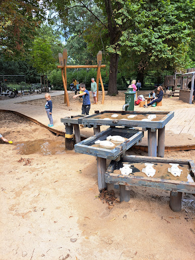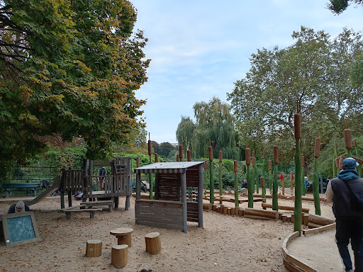 Schade, es ist gelungen, für bestimmt teuer Geld, einen tollen Spielplatz mit viel Platz für Bewegung, Rennen, Toben in ein Designerobjekt zu verwandeln, das zwar jetzt nett aussieht, aber keinen Platz mehr für Bewegung lässt. An der Pumpe kann man keine Gießkanne oder Eimer mehr füllen, der lange Steg ist überall im Weg, die vielen umgeölten Holzteile werden schnell verrotten (natürliche Luftfeucjtigkeit am See) und sind jetzt schon Quellen für Splitter in Händen und Füßen... Das ganze Arreal ist komplett unübersichtlich, so dass man seim Kleinkind gar nicht mehr sieht vor lauter sinnfreien Bauten. Höchst gefährlich die Gummimatte im "Parcours": da springt einer, damit die Kinder auf der anderen Seite hochhopsen. Leider sind die Gummimatten so niedrig angebracht, dass ein Kind während der Hüpferei darunterkriechen kann, wenn es dieses Hindernis auf dem Weg zur Mutter auf der Bank überwinden will und man ihm einfach auf den Kopf springt. Was hat man sich bloß dabei gedacht? Kennen die Herren Entscheider die Situation auf einem Spielplatz nicht? Wie kann der TÜV sowas zulassen? Hoffentlich muss nicht erst ein schwerer Unfall passieren, bevor der Irrsinn wieder abgebaut wird. Kinder haben genug Fantadie um mit allem Möglichen Kaufmannsladen, Fischerdorf und sonstiges zu spielen, sie brauchen aber Platu zum Laufen, Klettetszamgen und vor allem Schaukeln!!! Wir haben schon einen völlig kaputtmodernisierten Spielplatz mit metallenen Spielgeräten, die sich in der Donne richtig schön erhitzen und überdies total rutschig sind, im Park. Hier wären mal wieder...