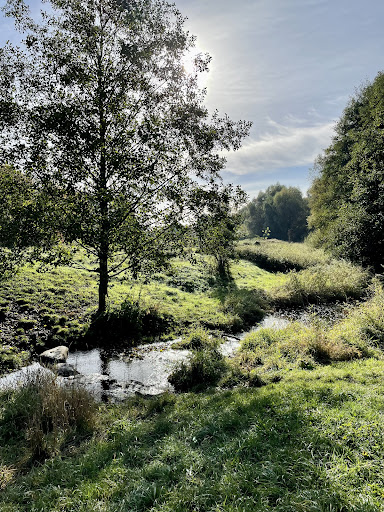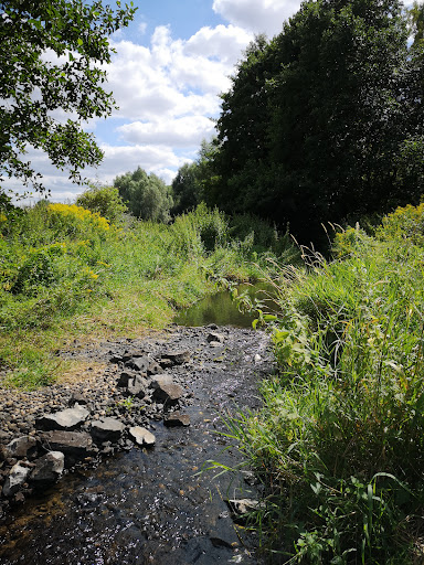 Very nice park on and around a large, wooded hill. The park is bordered on one side by the Wuhle stream and is part of a long bike path that continues much further northwards. The hill has many mountain bike paths and it is an official mountain bike training area, with built-in wooden ramps & other stuff for exciting bike practice. In the summer the thick foliage hides the nice view at the top, in winter it's a clearer view. Nice place for an afternoon walk with the kids...