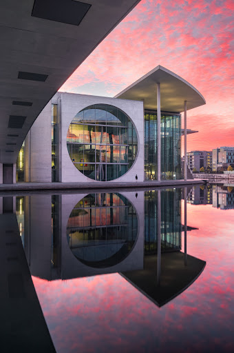 Designed by Stephan Braunfels and inaugurated in December 2003, the building sits gracefully along the Spree River, directly across from the Reichstag. It forms part of the architectural ensemble known as the Band des Bundes (“Federal Ribbon”), a symbolic ribbon of government buildings that spans the river and unites the once-divided halves of Berlin.