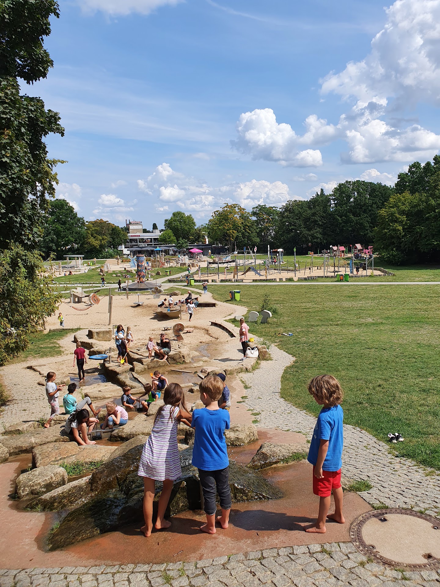 Read moreAn sich ein toller Spielplatz. Für Groß und Klein ist was dabei, von Parkurklettern über Wasserspielplatz bis hin zu Baby/Kleinkindbereich. An alles wurde gedacht nur (leider) nicht an genug Sonnenschutz. Sobald die Temperaturen an die 27° gehen, wird es schwierig mit der Nutzung vieler Geräte (Rutschen, Kletterberge u. ä.) Es gibt zwar einige Schattenplätze auf der großen Wiese aber der Spielbereich liegt komplett unter Sonneneinfluss und läuft quasi heiß, schade.