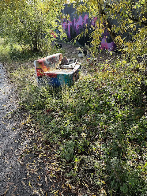 This is a regular spot for us to go on a walk - the birch trees along the east side of the park are so beautiful all times of the year, the North Side Gallery always decked with artistic variety from graffiti/street artists, regularly painting over with different themes. The grass and undergrowth were all cut in the fall 2022 (not sure how often they do this, but it would have been nice in the summer too), so everything looks a bit cleaner/more open. It is a dog-friendly park, often off leash/on long leashes with others to play and explore amongst the trees, and it is great that there is fencing along either side with only a handful of entrances along the side of the park to the street. There is a fitness area at the front of the park that seemed to take forever to „finish“, and other odd climbing structures...