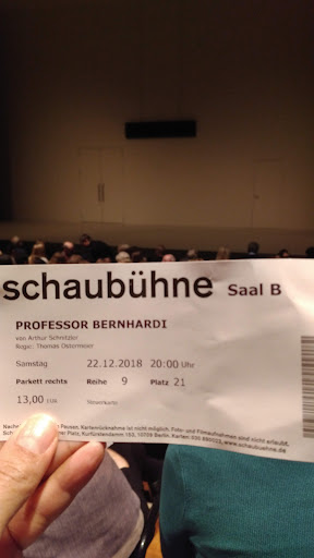 Read moreImmer wenn ich in Berlin bin, möchte ich Kultur erleben. Am 22. Oktober 2023 habe ich in der Schaubühne eine Aufführung von "Professor Bernhardi" erleben dürfen. Die Eintrittskarte habe ich vor der Reise unkompliziert im Internet bestellt. Mein Hotel war nur wenige hundert Meter vom Theater entfernt, ich konnte dorthin laufen. Vor Ort saß ich erst einmal im hauseigenen Café und habe einen guten Orangensaft getrunken. Ich konnte beobachten, dass auch die anderen Getränke und Snacks wie belegte Brötchen und Suppe sehr beliebt sind. Im Untergeschoss befinden sich die Toiletten und Spinde, in denen man für 1 oder 2 Euro seine Garderobe unterbringen kann. Das Geld bekommt man bei der Abholung zurück. Die beiden netten Damen, mit denen ich im Café gesessen hatte, haben mir erklärt, dass die aktuelle Vorstellung 3 Stunden ohne Pause dauern würde. Also bin ich noch zur Toilette gegangen. An diesem Abend war das Theater komplett ausverkauft. Und es hat sich mehr als gelohnt! So oft gehe ich nicht ins Theater, aber ich habe selten ein derart engagiertes Team auf der Bühne erlebt! Kulisse, Regie und die individuellen Leistungen der verschiedenen Schauspieler und Schauspielerinnen waren beeindruckend! Trotz ernstem Hintergrund gelang es dem Ensemble heitere Momente einzubauen. Auch die gelegentlichen Abweichungen vom Text haben mir sehr gut gefallen. Alles in allem durfte ich einen schönen Abend erleben, wobei ich die schauspielerischen Leistungen noch einmal ausdrücklich als hervorragend erwähnen möchte. Es war...