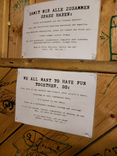 The crowd: I did not vibe with the crowd. It felt a bit weird and not your typical berlin techno crowd. Everyone kept to themselves, were rude and overall were not willing to engage in conversation. It seems like this was the type of place where everyone stuck to their friend groups, so if you do attend to this place, it's best to go with some friends