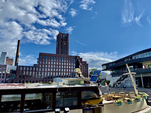 The 77m-high Ullsteinhaus, built in 1927, is a masterpiece of Brick Expressionism. So pretentious that you almost forget how inconspicuous it actually is. Every brick seems to have been measured with Prussian precision, every pilaster so straight, as if the bricklayers hadn't had any alcohol in their blood. The tower rises like an architectural middle finger into the spotlight. The row of windows takes order to the extreme, depending on how much you love grids. The base, on which I was also allowed to walk, supports all of this with the dignity of a fortress conceived by a Brutalist architect. And on top, there are battlements, naturally, for multifaceted dignity. In short: a building so sure of itself that it doesn't even notice how charming its arrogance...