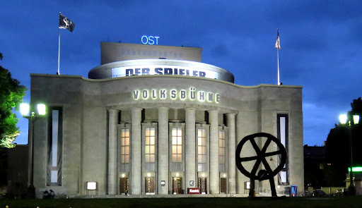 Берлинский Народный Театр - die Berliner Volksbühne очень знаковое явление в истории Германии. Потребность пролетариата в культурном развитии в эпоху индустриализации возросла, в городах в это время появилось много простого народа и они "жаждали зрелищ" :) Театры были дорогие, и не предназначались для простой публики. И образовалось общество деятелей искусства, которые решили создать что то качественное для рабочих, что бы форсировать их культурное развитие. На основе этого общества и образовался Verein Freie Volksbühne, Клуб Свободный Народный Театр, существует и сейчас. Члены этого сообщества могут покупать билеты дешевле. Именно поэтому в то время могли обходить запреты цензуры при постановках ибо это как бы были "закрытые" представления для членов этого сообщества. Театр построен на взносы рабочих - т.н. ArbeiterGroschen. Построен был в стиле модерн, начали до первой мировой войны, во время войны закончили. Интересно, что его забили до отвала современной техникой, это вообще была попытка создать нечто очень прогрессивное для того времени, вращающаяся сцена и.т.д... Сегодня он так же полон современных фишек, ещё и симультанные сцены, то есть представление одновременно на нескольких сценах, мультимедиальные примочки... Есть и молодёжный театр P14 там играют подростки от 14 лет... Очень круто. При открытии кстати техника заключила, сменили спектакль. Не сразу, но починили хотя критики конечно заругались. После второй мировой войны перестроили, украшения сняли, получились такие ясные строгие линии, такой соцреализм получился. Все в тему на мой взгляд. Рекомендую сходить. Это был в своё время самый большой разговорный театр Германии, почти 2000 мест.. Где то на сорок мест меньше двух тысяч. Потом количество мест уменьшили до 800 в шестидесятых, видимо кресла по просторнее, ряды пореже и все такое... Там ещё два салона красный и зелёный сбоку, очень уютные.. там лекции доклады, всякие мероприятия. Находится на Площади Розы Люксембург, рядом штаб-квартира левой партии, ну короче коммуняки видимо имели с самого начала влияние в этом театре, опять же цензуру можно было обходить, наверное там они свои идеи тогда уже пропагандировали! Короче "каждый советский человек" должен это место посетить! :))))...