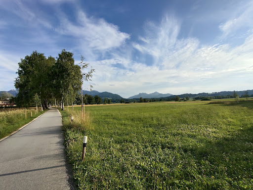 Es gibt alles was man für einen schönen Badetag am Chiemsee benötigt. Grosse Liegewiese mit schattigen Plätzen. Aber erst am frühen Nachmittag. Vorher ist's eher rar gesät.