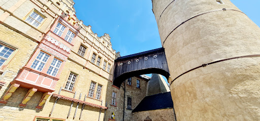 Read moreDer 44 Meter hohe Eulenspiegelturm auf dem Schloss Bernburg hat drei Meter dicke Mauern und war eigentlich ein Bergfried der einstigen Burg. Er stammt aus der letzten Hälfte des 12. Jahrhunderts, bot einen weiten Blick auf nahende Feinde, galt auch als sicherer Zufluchtsort und demonstrierte in der Mitte des Schlosshofes seine imposante Erscheinung... Die Geschichte nimmt ihren Anfang, als Eulenspiegel im 14. Jahrhundert seine Streiche in Bernburg ausführte, während der Graf von Anhalt auf seiner Burg in Bernburg lebte. Im Turm soll sich Till Eulenspiegel um 1325 als Turmbläser verdingt haben, deshalb bekam dieser im Volksmund seinen Namen... Leider ist der Turm derzeit geschlossen und kann nicht von innen besichtigt werden. Aber dennoch eine imposante...