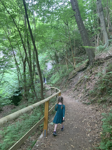If you’re in the area, this waterfall is absolutely worth it. I noticed the sign on the way to the castle parking lot and that there was a small pull-off about a quarter mile past the sign. On the way back from the castle, we parked in that small lot and walked to the sign for the Wasserfall, at which point there were steps going down that led to a trail. About 5-10 min later (walking at my 3 year old’s pace while wearing my 1 year old and keeping my 5yo from running too far ahead), we came to the waterfall. It is small and not VERY easily accessible - I’m sure people could get in the water if they really wanted to but you’d have to jump down and climb back up to the path - but very peaceful and beautiful. My kids loved it for about 2 minutes before they started asking when we were going to the Ferris wheel in the town. (Another must-do in this area!) aside from the initial steps, a stroller would have been fine to use. When we got back to the road, we turned left to see the small chapel on the side of the road which was beautiful and charming if not all that well kept. There was a picnic table in the lot where we had a snack...