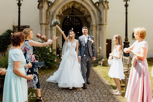 Besonders ĂŒberzeugt hat uns von Anfang an das stimmige Gesamtpaket: das groĂzĂŒgige GelĂ€nde mit verschiedenen Bereichen, das stilvolle Zelt, die Möglichkeit, in den Burgstall bis spĂ€t in die Nacht weiterzufeiern â und nicht zuletzt, dass wir und einige unserer GĂ€ste direkt im Schloss ĂŒbernachten konnten. Als Brautpaar hatten wir dort auch die Möglichkeit, uns in entspannter, besonderer Umgebung fertig zu machen â ein wunderbarer Start in diesen besonderen Tag.