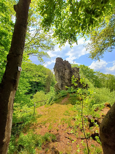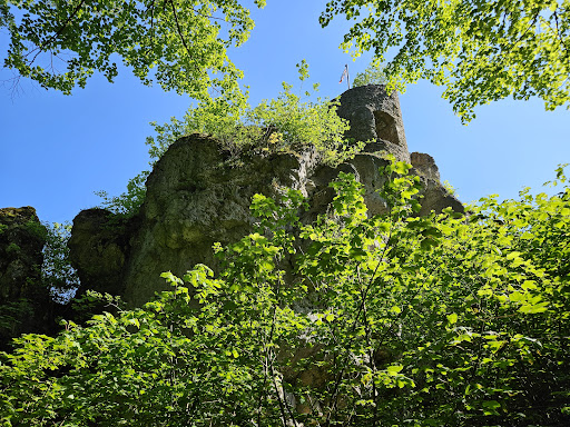 Eine alte Burgruine, leider nur noch mehr ein Teil des Turmes sichtbar, davor eine schöne Sitzgelegenheit ( 2 Holzbänke mit großem Tisch, mit herrlicher Aussicht). Das weitere Areal, aber sehr verwuchert, fast wie im Urwald. Insgesamt für Kinder nur an der Hand geeignet, sehr steile Abgänge, hier muss man vorsichtig vorbeigehen. Für Kinder abenteuerlich. Frei zugängig, auf eigene Gefahr und ...