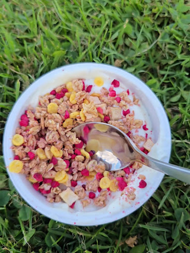 Abgerundet wird das Erscheinungsbild von einem Teich mit Fontäne, umstanden von Weiden, allerlei Wasserpflanzen und vielen Fischen darin, die regelmäßig tierische Fischliebhaber, wie den Graureiher anlocken.