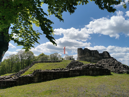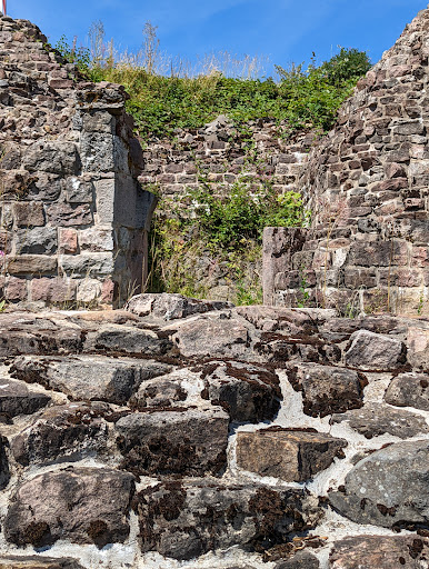 Vermutlich um 1160 als Grenzburg gegen die Fuldaer Äbte von den fränkischen Landbesitzern errichtet. Vieles ist unbekannt. Wikipedia beschreibt es mit "es soll". Um 1200 wird ein Reinhold von der Osterburg erwähnt. 1231 erhält ein Boto von Eberstein einen Hof als Lehen. Zu dieser Zeit wird die große Burg wohl bereits als Ganerbenburg in 3 bis 4 Höfe aufgeteilt sein. Um 1270 wird sie vermutlich zusammen mit Bischofsheim durch den Fuldaer Abt zerstört. Es erfolgt kein Neubau. Um 1600 wird die Burg als Trümmerhaufen bezeichnet. Und verkommt zum Steinbruch u.a. zum Klosterbau. Sie gerät in Vergessenheit und der Wald holt sich alles zurück. 1897 entdeckt dann Forstmeister Fuchs die Mauerreste. Da man sich zu dieser Zeit noch um Ruinen gekümmert hat, wurden die Mauerreste freigelegt. Der Bergfried wurde 1909 nicht ganz fachmännisch zum Aussichtsturm umgebaut. Jedoch so schlecht, daß er 1928 wegen Einsturzgefahr gesprengt werden musste. Das alles und noch Sagen über die Burg kann man bei Wikipedia und teilweise vor Ort an Infotafeln nachlesen. Gebaut wurde eine Kernburg mit einem quadratischen Wohnturm und einem Bergfried am anderen Ende, sowie einem Burgtor. Davor befand sich eine hölzerne Vorburg, alles weg. Außerdem sind die Reste der Ringmauer erhalten. Auf der Wohnturmseite wurde später eine Schildmauer errichtet. Wer meiner Wegbeschreibung folgt, kommt an dieser an. Nachdem man durch eine Mauerlücke den Burghof erreicht, ist man erstmal enttäuscht. Viel nichts, nur einige wenige Reste zu sehen. Doch das täuscht, wer durch das Tor geht, sollte dann rechts um die Burg laufen, dort ist dann eine Zwingeranlage und die Reste vom Palas. Sehenswert. Zum Besuch kann man den Wanderparkplatz Osterburg nutzen, von da am Wegweiser die Treppen nach unten dem Waldweg folgen. Danach über die Landstraße weiter im Wald. Alles ausgeschildert. Auf MAPS sieht der Weg weit aus, sind...