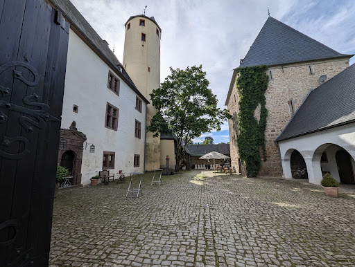 Die Absprache und Planung mit Herr und Frau Herrmann im Vorfeld unserer Hochzeit war freundlich, persönlich und sehr professionell, sodass wir keine Sorgen rund um unsere Hochzeitsplanung hatten. An unserem Hochzeitstag sind wir durch Frau Herrmann persönlich begrüßt worden und hatten sofort das Gefühl, dass man sich ehrlich für und mit uns freut. Nach dem Standesamt wurden unsere Gäste mit einem tollen Sektempfang im Burghof begrüßt. Im Hof waren liebevoll dekorierte Stehtische mit Hussen, sowie ein Tisch mit kleinen Leckereien aufgebaut. Im Hintergrund lief Musik, die wir uns zuvor ausgesucht hatten. Alles lief reibungslos, sodass unsere Gäste und wir als Hochzeitspaar eine stressfreie und angenehme Feier genießen durften, ohne uns um etwas kümmern zu müssen.