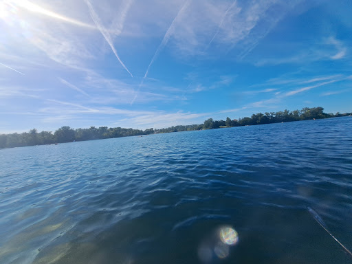 Wunderschöner See mit (kleinem) Strandbad im Naherholungsgebiet. Der relativ schmale Strandstreifen bietet zumindest in den Sommermonaten keinen Platz zum Liegen. Hier planschen die Kinder, da das Wasser schnell an Tiefe gewinnt. Rechts, hinter der Strandbar, ist eine Liegewiese, die etwas Pkatz bietet. Hier sind auch nochmal zwei Zugänge zum Wasser.