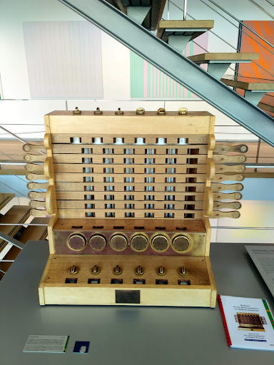 Read moreThis nice museum covers the history of counting technology and calculators from about -5000 B.C. until about 1980. Exhibits starting with simple pebbles and abacus devices, through more sophisticated calculators such as Napier Bars, more complex mechanical calculators and through to the modern IBM computers. Some complex mechanical calculators require hours of study to understand the exact operation. Older guys will remember the motorized calculators of the 1960's that are not very different from their 17th century predecessors only with motors rather than handles. One conclusion is that the progress during the last 50 years overshadows the previous 5000 years - exponential explosion of technology. What I missed mostly were: an Enigma Machine exhibit, a modern laptop & smartphone (and a not so modern Casio scientific calculator & HP handheld), a more in depth explanation of the mathematical basis for some exhibits (especially the Napier Bars) and basic explanation of Bulean Math which is the basis for modern electronic computers. An indication of future trends could be very interesting too. The exhibits are having explanations in both English and German languages but few are not having...