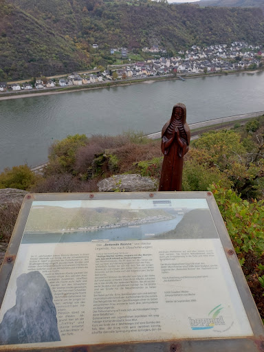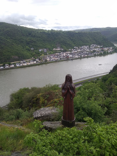 Die Betende Nonne ist eine Statue, die sich auf dem Traumpfad Saar - Hunsrück Fünfseenblick befindet. Dieser Traumpfad ist ein Rundweg, der in Bad Salzig startet. Schöner Weg, momentan durch Bauarbeiten kleine Umleitung. Zu der Betenden Nonne gibt es eine Legende, welche man auf einer Tafel nachlesen kann. Alles verraten möchte ich nicht, nur: Der Weg lohnt sich. Von dort hat man einen guten Blick ins Rheintal und das gegenüber...