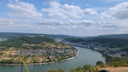 Hier ist eine kleine beschilderte Stelle, die einen virtuellen Blick auf den Rhein zulässt. Aufgrund der geografischen Lage inklusive des Blickwinkel erscheint der Rhein aufgeteilt in 4 Seen.