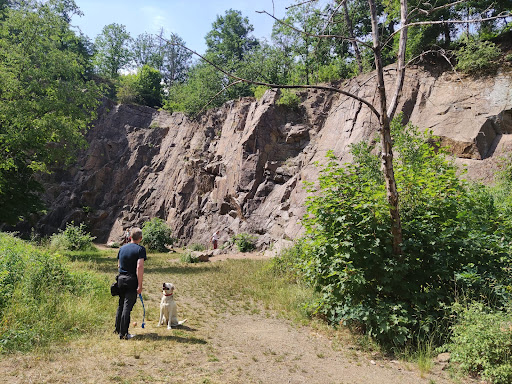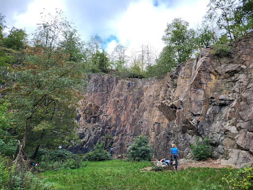 Schöne Stelle zum klettern, allerdings ganz ohne Ausrüstung nicht zu empfehlen und auch nicht machbar. Der Ort wird von einer Kletterschule genutzt daher sind dort auch überall Ösen oder wie auch immer das genannt wird angebracht. Ein paar Meter weiter um die Stelle aussenrum hat man einen schönen Ausblick von oben in einen Steinbruch (See), man sollte allerdings aufpassen wenn man Kinder dabei hat da es sehr steil nach unten geht und nicht...