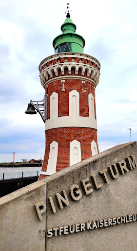 Read moreIch liebe diesen kleinen Turm! - Steht er doch an einer außergewöhnlichen Stelle: der Kaiserschleuse! Hier fuhren die berühmten "4 Windhunde des Meeres" (Norddeutscher Lloyd!) in den Hafen, wenn sie von New York zurückkamen; Ab 1897 "Kaiser Wilhelm der Große"! Ab 1901 "Kronprinz Wilhelm"! Ab 1903 "Kaiser Wilhelm II"! Ab 1907 "Kronprinzessin Cecilie"! Ein absolut glorioses Schnelldampferquartett und Stolz der Deutschen Handelsschifffahrt. Später wurde dann die Nordschleuse gebaut für riesigen "Bremen" und "Europa". Aber die Kaiserschleuse mit dem Pingelturm ist noch immer, nach über hundert Jahren, in Betrieb! Zwei Klassiker des kaiserlichen...