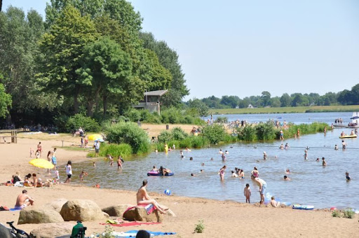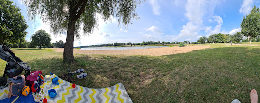 Read moreSuperschön und erholsam. Viele Enten, Reiher und Nutrias, gemischtes Publikum, gut zum im Wasser baden, SUP fahren usw. Geeignet. Auf den Rasenflächen gibt es Möglichkeiten zum Grillen und für diverse Outdoor Sportarten. Einen Stern Abzug, weil seit 2021 sehr viele Glasscherben und Müll dort rumliegen. Zudem wurden Volleyballfelder an der denkbar ungünstigsten Stelle errichtet - erhöht, auf der kleinen Wiese am Wasser, die eh schon immer gut besucht war. Diese ist dadurch kleiner geworden und durch die Erhöhung der Felder bekommt man dort häufig "Ballbesuch". Auch für die Volleyballer ist es vermutlich nur bedingt lustig, die Bälle regelmäßig aus dem Wasser oder von anderer Leute...