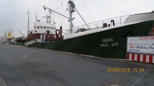 Read moreDie FMS "Gera" ist ein ehemaliger DDR-Fischtrawler mit Seiten-Schleppnetz. Alles super hergerichtet. Viele Erklärungen in Videostationen im Schiff. Eintritt mit 3,50 Euro für Erwachsene voll o.k. Also man kann erstens gut 1 Stunde oder länger sich da Zeit nehmen... Und direkt vor dem Schiff kann man lecker Fischbrötchen kaufen oder sich zum Mittagessen hinsetzen und einfach schauen was da geht. Und eine Hafenrundfahrt startet auch noch gleich dort. Also man kann da einen halben Tag gut und interessant gestalten. Liegplatz...