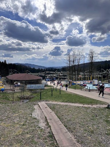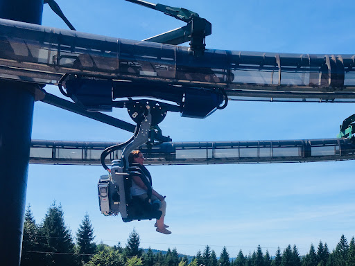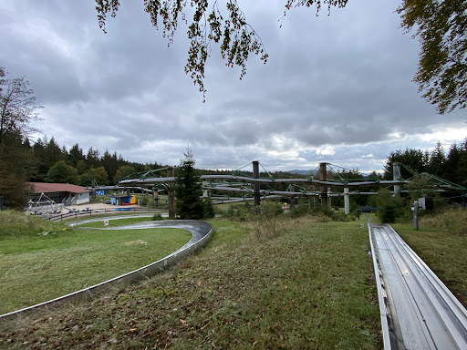 Die Sommerrodelbahn: Leider eine Wiegand Anlage bei der man in einer Rühre fährt. Die Schienengebundenen Anlagen, gefallen mir deutlich besser und bieten auch mehr Adrenalin. Teilweise liest man Internet und auch hier bei den Google Bewertungen von Unfällen auf der Bahn, bei denen sich Gäste/Kinder verletzten. Hierzu muss man Anmerken das Sommerrodelbahnen "Sportanlagen" sind und keine Fahrgeschäfte. Wenn man bei dieser Bahn sich nicht in die Kurven lehnt und dabei (ganz wichtig) abbremst, kann man schon mal vom Schlitten fallen, was übel ausgehen kann. Trotzdem einer der schlechteren Rodelbahnen die ich gefahren bin, auch wenn die Länge gar nicht mal so kurz ist und das Layout schon ziemlich gut ist. Das hochfahren, zurück nach oben zur Station, dauert leider Ewigkeiten und ohne Rückenlehne ist es auch als Erwachsener nicht gerade angenehm lange zu verharren. Ich wäre lieber zu Fuß zurück/hoch gegangen. Die Fahrt kostet 4€.