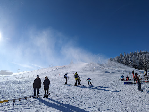 Read moreAls je een beginnende skiër bent kun je hier echt alle kanten op. Dit geweldige skigebied ligt op 20 auto-minuten van Center Parcs Allgäu in Zuid Duitsland. Vanaf daar voor ons met 4 kinderen prima te doen, het is een korte en leuke autorit door bergachtig gebied. Het skigebied heeft alles te bieden voor elk niveau, of je net begint of al jaren skiët. Er zijn kleine en korte liften maar ook lange(300 meter) en redelijk hoge liften. Er is ook een apart gedeelte waar je alleen met slee af mag en dat is mega tof. Je gaat echt keihard. Wij waren van plan om skiles te nemen maar waren te laat en zijn zelf gaan oefenen. We hadden in december enkele skilessen gevolgd en na een paar keer op en neer ging het steeds beter, ook bij de kleinsten onder ons. We hebben echt genoten. Kijk goed naar de prijzen, wij we waren met ons gezin het goedkoopste uit met een familiekaart van €69 voor de hele dag met toegang tot alle liften. Je kan ook voor 2 of 3 uur kaarten kopen, dat scheelt enkele euro's. Door de werksfeer erg rustig hier, zaterdag en zondag een druk. De pizza's in het café zijn een aanrader, maar alleen in het weekend...