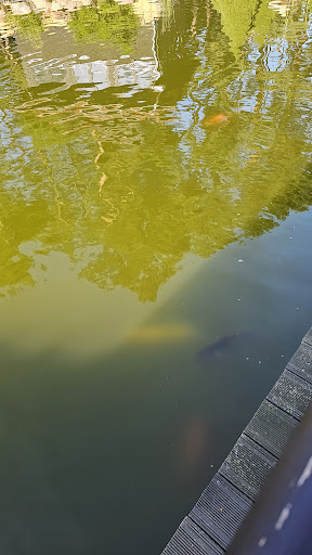 Wir waren heute zum ersten Mal in diesen Koigarten. Wir waren weniger wegen der "Koi" als wegen des "Garten" hier. Als Japan-Fan, wollte ich hier unbedingt vorbeischauen. Da wir eh in Burg unterwegs waren, war ein heutiger Besuch wortwörtlich naheliegend. Generell zur Info: Derzeit sind noch Osterferien in Berlin/Brandenburg, weshalb viele Familien in Burg unterwegs waren, zumal es super Wetter war und morgen hier der Spreewaldmarathon stattfindet. Wir waren zur Mittagszeit hier angekommen. Die Dame am Eingang hat uns nett begrüßt und über die Gartenanlage informiert. Zunächst haben wir aber unseren Hunger stillen wollen. Das Restaurant war gut besucht. Ein wenig haben wir uns geärgert, dass wir uns nicht in die Sonne setzen konnten, da die Tische reserviert waren. Nachdem, wir bestellt hatten, wurden die reserviert-Schilder weggestellt und die Plätze aber nicht besetzt - vermutlich wurde die Reservierung storniert. Im Nachhinein war ich dann aber froh im Schatten gesessen zu haben, da die Aprilsonne doch etwas aggresiv heute war. Das bestellte Schnitzel mit Spargel und auch der Burger waren sehr lecker. Preis-Leistungsverhältnis fand ich vollkommen in Ordnung. Die beiden Kellner waren auch sehr freundlich und obwohl viel los war, ging alles zügig und ordentlich. Die Atmosphere ist hier auch wunderschön. Anschließend haben wir die Gärten besucht. Die unterschiedlichen Themengeräten sind sehr gut gepflegt und ich finde es toll, wie der Raum super genutzt wurde. Wir sind alle Wege langgelaufen und haben immer wieder was Neues entdeckt. Besonders angenehm fand ich den Klanggarten. Die Eintrittspreise auf der Webseite sind nicht mehr aktuell - es stehen noch 5 EUR drauf, bezahlt haben wir 7 EUR. Ich bin mir nicht sicher, ob es 2025 eine generelle Preiserhöhung gab, oder ob es aufgrund der Ferien einen Aufpreis gibt. Ich finde den Preis dennoch okay. So ein großer Garten muss auch gepflegt werden und wer denkt, das macht man mal so nebenbei mit, der irrt. Die fleißigen Gärtner haben wir heute auch gesehen. Wir kommen auf jeden Fall hier wieder...