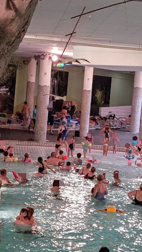Auf Nachfrage Info erhalten, dass kein Wellenbad, sondern stündlich einige Minuten im UG Wellen erzeugt werden. Wenig Sitzplätze (feststehende Plastik-Gartenstühle), keine Ruheliegen. Sämtliche Sitzplätze (zumindest mit Handtüchern) belegt.
