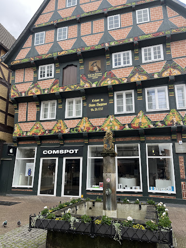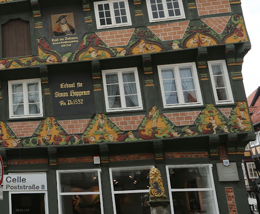 Das Hoppenerhaus in der Poststr./Rundestrasse wird als das bekannteste und prächtigste Fachwerkhaus 🌟🌟 in Celle und Umland beschrieben. Erbaut wurde das Haus 1532 von Simon Hoppener der herzöglicher Rentmeister war. 💡( Hierbei handelt es sich jemanden, der zuständig für die Einziehung der Einkünfte war). Besonders auffallend sind die prächtigen Verzierungen an der Fassade sowie die Schnitzereien . Diese sollen sogar Auszüge aus der Bibel wider geben. Zudem spiegeln sie auch den Wohlstand des Erbauers wieder. 💰💰 Vor dem Haus steht ein mit Wappenlöwen verzierter Pipenposten. Im 16. Jahrhundert diene dieser (einer von dreien)💦 als Brauchwasser Brunnen. Das war schon ein Privileg einen Brunnen vor der Haustür zu haben… Das Haus ragt mit 6 Stockwerken empor. Neben der Aufzugsluke gibt es seit 1901 ein Bild von Herzog Ernst dem Bekenner. 1932 wurde der Dachstuhl durch einen Brand 🔥 zerstört. Glücklicherweise ❤️🥰 gelang es der Feuerwehr die darunter liegenden Balken mit den historischen Schnitzereien vor dem Feuer zu schützen. Wer noch mehr erfahren möchte, den empfehle ich eine Stadtführung in den Sommermonaten. Zu dieser Zeit ist das Licht auch gut um das Haus gebührend zu fotografieren. 😉 💡 Wer rechts rum in die Rundenstraße einbiegt entdeckt auch noch die sprechenden Laternen, mit flotten Sprüchen auf den Lippen oder einem gute Nacht Lied...