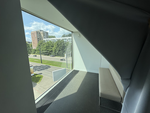 Die Ausstellungsräume sind groß und übersichtlich, Toiletten sind auf beiden Etagen vorhanden und barrierefrei. Nur der Wasserhahn war schwer zu bedienen. Das Licht ist angenehm gedimmt. Sitzmöglichkeiten sind vorhanden, könnten aber mehr sein.