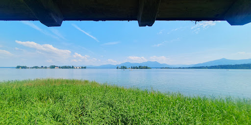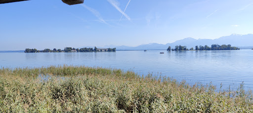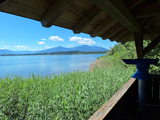 Free of charge shaded observation tower overlooking Chiemsee, Fraueninsel & Krautinsel and the mountains in the distance. You can't quite see Herreninsel. Only accessible via gravel path, not directly by car. There is a lot of information about local birds and a landviewing...