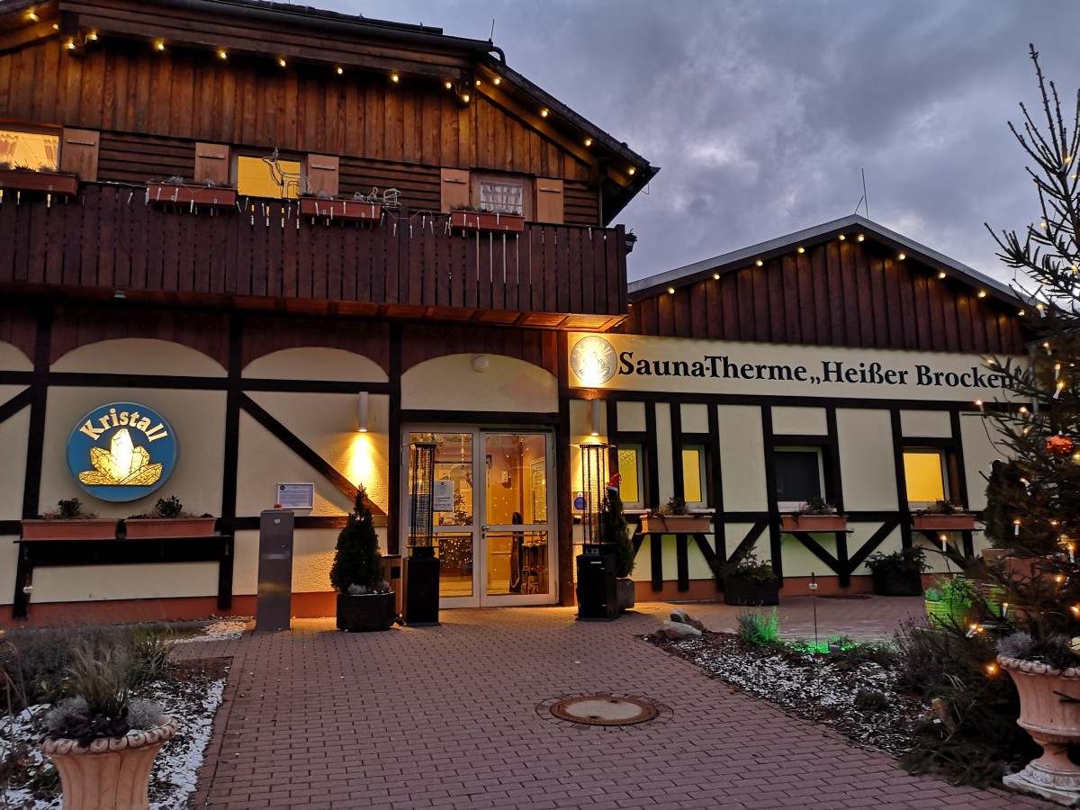 Read moreDie Lage ist schön, tolle Aussicht. Das Personal am Empfang war freundlich, jedoch hat mir gefehlt, dass man fragt ob es der erste Besuch ist & ob man sich auskennt usw. Im ggf. Noch Infos zu geben. Man erhält ein Chiparmband was an sich schon mal gut ist - Getränke, Nachzahlen usw. funktioniert damit, aber es macht nur richtig Sinn, wenn sich auch die Schränke im Umkleidebereich damit bedienen ließen. Das finde ich unpraktisch, schließlich möchte ich nicht zwei Armbänder während der Saunagänge tragen, von denen das der Schränke auch noch einen Schlüssel hat,der sehr heiß wird wenn man in die Sauna geht. Außerdem ist es auch nicht richtig fest zu verschließen, da das Gummiarmband immer aus dem „Verschluss“ rutscht. Die Schränke sind für mein Gefühl auch ein wenig zu klein. Vom ersten Eindruck her war aber alles sauber & ordentlich. Die Eingangssituation in der Damendusche ist unglücklich gelöst - das viel zu kleine Regal ist direkt hinter der Tür angebracht, sodass man aufpassen muss, dass man nicht das Türblatt abkriegt. Die Duschen & WCs an sich waren sauber, ein paar Haken mehr wären aus meiner Sicht aber auch hilfreich. Das Design in den Duschen ist Geschmacksache & soll das Kistall Thema aufgreifen, für mich wirken die Kristallscheiben zwischen den Fliesen verloren. Der Hauptbereich ist relativ dunkel, kein Lageplan der irgendwo hängt - dafür gibt es unpraktische DIN A4 Pläne aus Papier.1. nicht nachhaltig, 2. möchte ich den nicht ständig rausholen müssen. Der Aufgussplan hängt mehrfach aus - das ist gut! Ich finde den Innenbereich zu voll und zum Teil ein wenig lieblos gestaltet & in die Jahre gekommen. Der erste Aufguss in der Dr. Eisenbarth Sauna war super! Der zweite, ein Aufguss mit Peeling, war an sich auch gut & heiß genug, aber es war sehr unruhig während des Aufgusses. Ständige Gespräche empfinde ich als nicht sehr erholsam. Bademäntel und Latschen sollten nicht in den Vorraum der Sauna gestellt werden, da staut es sich wenn auf einmal alle raus wollen, sehr unangenehm. Alles in allem waren die Aufgüsse wirklich gut, vor allem der in der Harz-Quarz-Sauna. Die Mega Brocken Sauna im oberen Bereich wird ihrem Namen gerecht - super, dass es zwei Türen für die Sauna gibt! Der restliche Bereich im Obergeschoss ist sehr dunkel & wirkt günstig gestaltet. Warum man die Fenster mit künstlichen ersetzt & ein unnatürliches Bild eines Panoramas einfügt kann ich der Lage und Gegebenheiten wegen nicht verstehen. Die Dachterrasse wirkt total traurig. Ein paar Blumenkästen und Kunststoffliegen auf Waschbetonplatten. Das könnte man richtig schön machen, der Platz ist da - das könnte echt ein Highlight sein. Der Garten ist schön, vllt könnte man zusätzliche Mülleimer aufstellen - wobei man da eher an die Vernunft der Gäste appellieren müsste, seinen Müll nicht einfach in die Blumenkästen vor der Sauna zu legen. Das große Außenbecken ist schön, dafür fällt das im Innenbereich deutlich kleiner aus. Das Solebecken draußen ist ein Pluspunkt. Positiv ist auch, dass es verschiedenste Saunen gibt. Die Stollen-Dampfsauna ist besonders positiv aufgefallen! Kein muffiger Geruch und sogar eine Ver-wedelung mit Peeling gab es- das habe ich zuvor noch nirgendwo anders gesehen & fand ich richtig angenehm und entspannend! Hat der Saunameister, Benedikt, sehr gut gemacht. Der Gastronomiebereich ist relativ dunkel, das Personal zwar freundlich aber sichtlich genervt von anderen Kunden & technischen Geräten die wohl nicht so funktionieren wie sie sollen. Ich finde auch 4.90€ für einen Liter Wasser fast frech. Fazit für mich ist, dass ich bei 36€ für die Tageskarte mehr erwarte. Das Ambiente und die Bereiche könnten durchgehend stilvoller und zeitgemäßer gestaltet sein, man könnte da so viel mehr raus machen. Ich werde nicht wiederkommen, Anfahrt und Preis/Leistung für mich nicht lohnenswert. Wenn man in der Gegend wohnt kann man es machen, aber 36€ sind trotzdem...