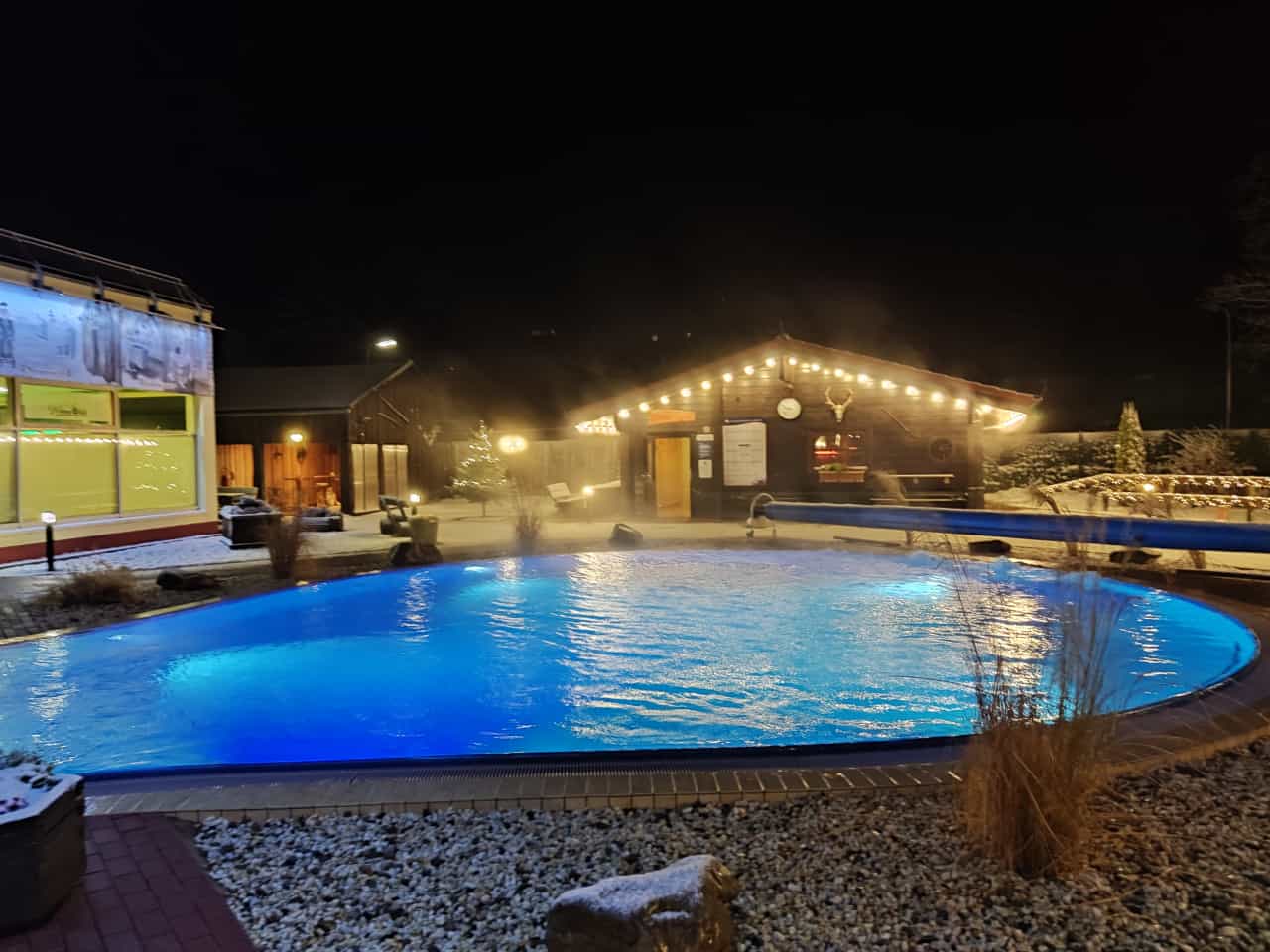 Read moreWir sind leider negativ überrascht. Waren dort um einen entspannten Sauna-/Badetag zu haben. Für Entspannung in gemütlichem Ambiente ist man dort leider an der falschen Adresse. Dadurch, dass der Badebereich mitten zwischen den Saunen ist und ein Teil der Liegen ebenfalls direkt vor 3 der Saunen steht, ist es in den Saunakabinen extrem laut. Ich war bereits in vielen Saunabereichen von etlichen Thermen und einen solchen Geräuschpegel habe ich noch nirgends erlebt, obwohl während unseres Aufenthaltes keine Kinder in der Therme waren. Entspannung ist Fehlanzeige. Dass man auch FKK in die Schwimmbecken darf steht nirgends geschrieben, auf der gesamten Website nicht. Es sind viel zu wenige Liegen für die Einrichtung, die Liegen stehen auch viel zu dicht nebeneinander. Wir waren zu zweit sehr früh dort und haben bereits die letzten beiden Liegen bekommen. Die beiden Ruheräume sind winzig und absolut steril (keine Deko, nichts) und extrem kalt war es dort. Wirklich ruhig verhält sich dort auch niemand, habe ich noch nie so erlebt. Wirklich schlimm. Weiterhin ist die Einrichtung extrem überteuert, dafür, dass es nur 5 Saunen gibt. Auch, dass die obere Etage mit Kaminzimmer und Panoramaterasse komplett gesperrt war, sowie die Solarien auch, hat uns am Eingang niemand gesagt. Es gibt ein kleines Schwimmbecken, dass sich zu einem Teil im Innen- zum anderen Teil im Außenbereich befindet (33 Grad, 1,5% Sole). Ein weiteres 33 Grad warmes kleines Schwimmbecken im Außenbereich (1,5% Sole), welches sie „großes Außenbecken“ nennen, dieses Becken kann man übrigens nur von außen oder aber von einem der beiden Ruheräume aus erreichen (was natürlich total dumm gemacht ist) und den „Hexenzuber“, ein 36 grad warmes Minibecken mit 12% Solegehalt, in das etwa 15 Leute dicht an dicht hinein passen. Ganz versteckt gelegen im Innenbereich befindet sich noch der „Dampfstollen“. Dort ist auch ein kleiner Whirlpool. Im Außenbereich befindet sich gar keine Abkühlungsmöglichkeit, obwohl es draußen eine Sauna gibt. Der Abkühlbereich im Innenbereich ist recht klein und besteht lediglich aus einem Kneippschlauch und ein paar einfachen Brauseduschen, keine Regenwasser- oder Erlebnisdusche, wie man es von anderen Saunabereichen kennt. Auch eine Möglichkeit für ein Fußbad hat mir gefehlt. Die Einrichtung ist insgesamt in die Jahre gekommen. Die viel zu kleinen Spinde benutzt man indem man sein Eintrittsticket einstecken muss und dann den Schlüssel abziehen kann. Die Armbänder mit den Schlüsseln lassen sich extrem schlecht verschließen und das Band rutscht immer wieder heraus, man muss echt aufpassen sein Schlüssel Armband nicht zu verlieren. Hinter dem Umkleide- Spindbereich befinden sich Damen- und Herrenduschen und -Toiletten. Betritt man dann den Badebereich befindet man sich zuerst im Restaurant Bereich, dieser ist wie gesagt direkt im Bade- Saunabereich, lediglich die Tische sind mit einer sehr niedrigen spanischen Wand vom Rest der Therme abgetrennt, was die Geräuschkulisse natürlich noch weiter steigen lässt. Da man ja kein Chip-Armband hat, muss man bar zahlen, Kartenzahlung war nicht möglich. Der Außenbereich der Therme ist etwas gemütlicher gestaltet. Dort findet man viele Hexen, schöne Bilder auf den Außenwänden des Gebäudes, die ein wenig die Geschichte der Umgebung erzählen und die Sauna- und die Raucherhütte sind bereits mit Lichterkette geschmückt. (18.11.). Der Außenbereich hat allerdings ringsherum nur einen sehr niedrigen Sichtschutz. Es wäre angebrachter hoch wachsende Sträucher zu Pflanzen, denn in direkter Nachbarschaft befinden sich Hochhäuser, die perfekten Ausblick auf die Thermengäste haben, so wie sie Gott geschaffen hat. Die Saunen selbst waren top in Schuss und sehr schön. Allerdings zerstört die Unruhe extrem den Wohlfühlfaktor. Wünschenswert wäre es auch alles ein wenig gemütlicher zu gestalten. Lohnt sich Preis- Leistungsmäßig leider überhaupt nicht, besonders nicht, wenn man in die Sauna geht um Entspannung für Körper und Geist zu finden, nur für Leute geeignet, die sich von einem zum anderen...