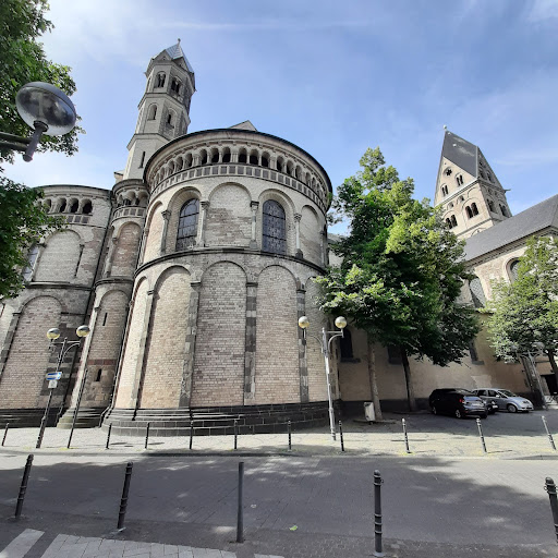 Read moreSt. Aposteln is a Roman Catholic church and one of the twelve major Romanesque churches in the city of Cologne. The three-aisled church is located in the city center on Neumarkt between Hahnenstraße and Mittelstraße. It is characterized by an elaborately designed triangular system, in which two flanking east towers are integrated. Opposite them is the west tower, which, with its approximately 67 meters, is the third highest tower of the Romanesque churches in Cologne. The cloverleaf-shaped choir building is dominated by a short octagonal crossing tower, which is crowned by a lantern. The transept of the nave is connected to the west tower by a short,...