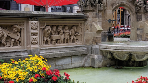 This beautiful fountain is all year round colored by the gorgeous flowers planted in front of it.The statue of the Schneidersfrau is made of iron,the original of which is in the Köln Museum as the fountain itself was restored and reconstructed a century ago.The rest of the intricately carved into the fountain legend is made out of stone by the same two people who composed the magnificent Cologne Cathedral.