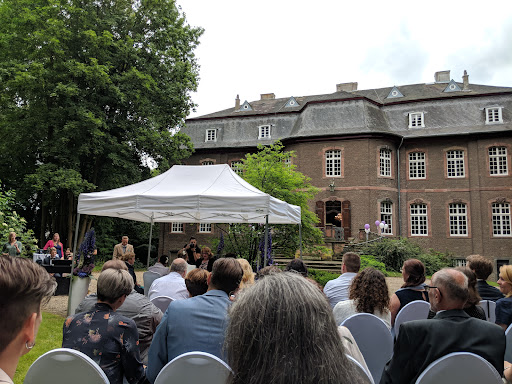 Ein schöner Schloss, leider für die Öffentlichkeit gesperrt. Wurde im 14. Jh. als Wasserschloss von der Revelen Familie erbaut. Im 18. Jh nach mehrfaches Besitzwechsel baut die Adelsfamilie von Achall den Schloss in seiner heutigen spätbarocken Form um. Heutzutage beherbergt der Schloss ein Teil der Sammlung der Theaterwissenschaftlichen Fakultät der Universität zu Köln. Wiederum ein anderer Teil der Anlage ist für Trauungen verfügbar. Als wir da am Sonntag ankamen, war es selbstverständlich zu und man konnte nur durch den Zaun im Hinterhof reinspähen. Es schinen Bauarbeiten im Gange zu sein. Wir haben auch eine schöne kleine Kapelle erblickt sowie weitere interessante Details. Die Porz-Wanderroute verläuft vor dem Schloss. In der Nähe ist der Elzhof, wo man am reges Karnealfeiern. Auch in der Nähe ist die Bus- und...