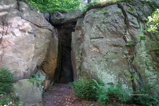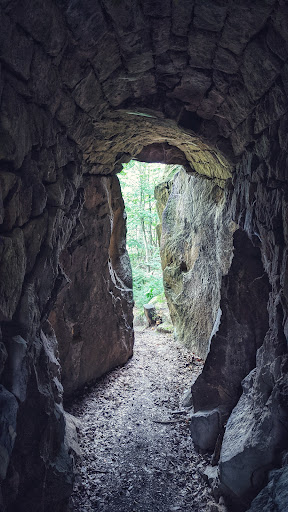 Read moreDer Name ist interessanter als das Bauwerk selbst (wenn man es so nennen will, das "Dach" wurde hinzugefügt, ebenso ein paar Stufen). Faktisch ist es ein Durchgang zwischen zwei großen Felsbrocken mit einer kleinen Treppe, die auf die Felsen führt. Sicher gut um Kinder eon Stück durch den Wald zu locken, aber...