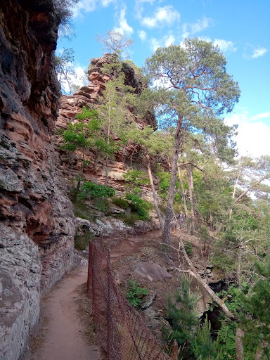 Read moreEs gibt mehrere Möglichkeiten zum Jungfernsprung zu kommen. Wir sind vorne von der Straße ca. 20 min gemütlich einem steilen Weg hoch gegangen. Über den Rentnerweg kommt man ggf. über eine lange Treppe hoch oder von der anderen Seite mit dem Rundweg. Die Aussicht zeigt die Vogesen und die Stadt Dahn. Es ist OK aber mehr nicht. ein zweites Mal würde ich nicht hoch. Die Felsen sind sehr uneben und abgewetzt daher sehr glatt. Man sollte gut zu Fuß sein und gutes Schuhwerk anhaben. Bei Regen oder wenn es sehr nass ist finde ich es...