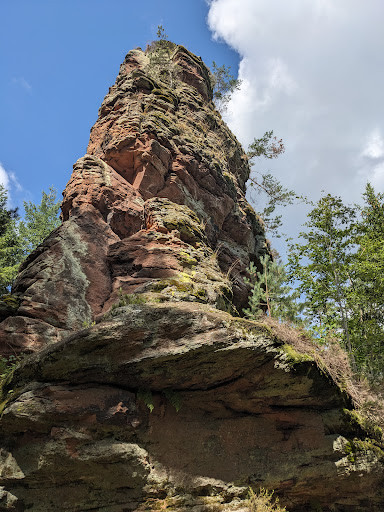 Read moreEine abwechslungsreiche Halbtagestour: Auf naturbelassenen Pfaden führt der Premiumweg "Napoleon-Steig" durch eine beeindruckende Felsenlandschaft mit tollen Ausblicken. Erste Station ist das 500 Meter lange Felsmassiv Retschelfelsen. Von dort führt ein Pfad zu den neu erschlossenen Eisenbahnfelsen mit ihren außergewöhnlichen Wabenbildungen und Auswaschungen im Buntsandstein. Weitere markante Punkte dieser Tour bilden die Rauhbergfelsen und die Reinigshofquelle mit herrlich frischem und trinkbarem Quellwasser. Oberhalb der Talaue befindet sich der bizarre Namensgeber des Premium-Steigs: der Napoleonfelsen. Nach der Pfälzerwald-Vereinshütte „Am Schmalstein“ gilt es einen letzten Aufstieg zu bewältigen, bevor es dann wieder durchs Wöllmersbachtal hinunter nach Bruchweiler-Bärenbach geht. Trotz anhaltendem Dauerregen hat mir die Wandertour richtig gut gefallen. Zu Recht...