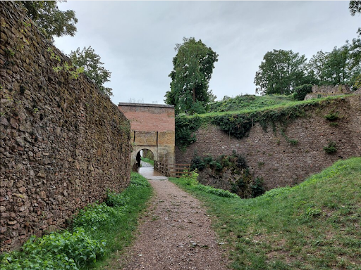 The castle lies on a hill, and you can best reach it by car. There’s a parking spot in front of the small gate, right next to the cemetery there. You then head up to the wall before you turn left and walk up even higher.